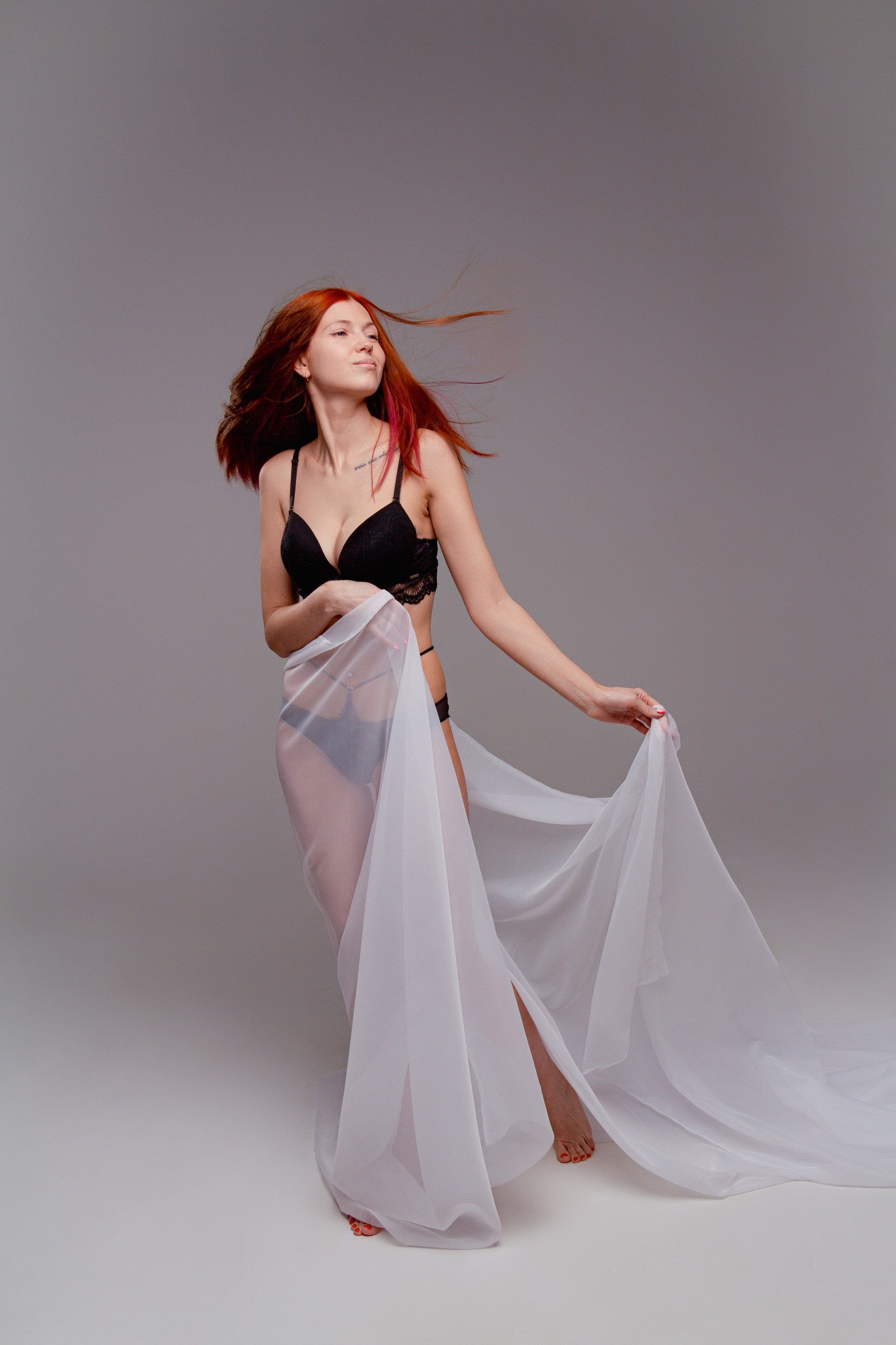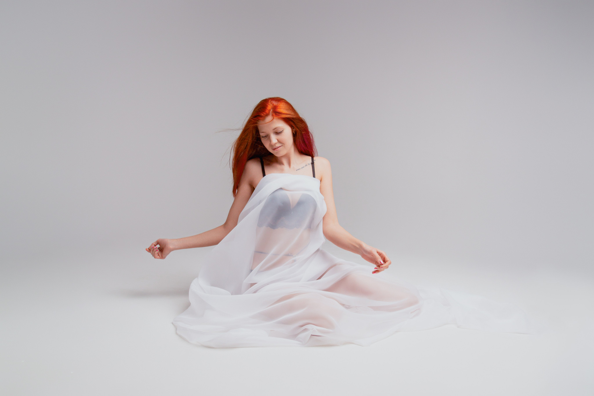 Волшебство легкости. Прекрасная Екатерина словно пленник невесомости и притягательности под белой прозрачной тканью.